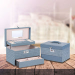 متجر LC أوف وايت جلد التمساح نمط جلد صناعي 3 طبقة قابلة للتحويل حلية مجوهرات منظم صندوق تخزين مع قفل قفل الهدايا