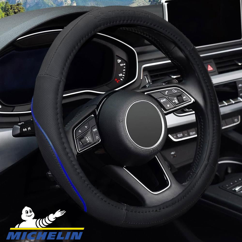 Michelin ML1003NAZ Premium Artificial Leather Steering Wheel Cover Black BLUE